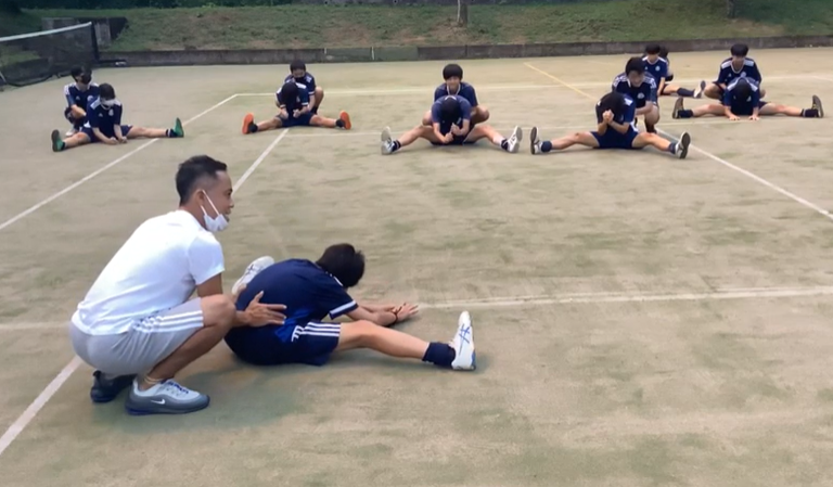 トレーニング前の股関節の体操も意識高く取り組みましょう!